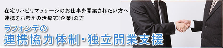 在宅リハビリマッサージ&独立開業支援・連携協力体制なら「ラフォンテ」にお任せ下さい!